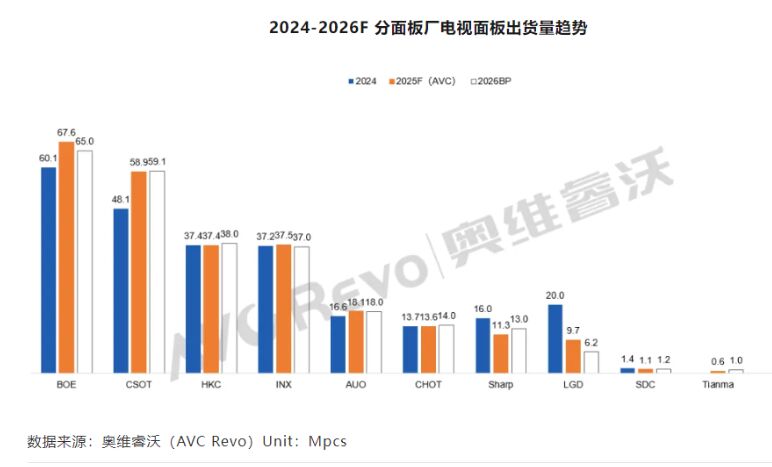 當前,電視行業正處于深度調整周期,2025-2026年的電視面板行業,也在調整中謀求增長破局。奧維睿沃數據顯示,2026年電視面板整體需求預計比2025年小幅下降2%,弱需求下面板廠商將實施動態控產,出貨預期也將變得更加謹慎。