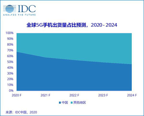 5G趨勢已經不可阻擋。近日,全球知名數據分析機構IDC發布預測,2020年全球5G手機出貨量約2.4億臺,中國市場的貢獻將超過1.6億臺,占比約67.7%。5G制式將顯著成為今年手機市場主流,而在未來5年內,中國也將持續占據全球約一半的市場份額。