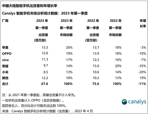 4月27日訊,據(jù)分析機(jī)構(gòu)Canalys(科納仕)發(fā)布的最新數(shù)據(jù),今年一季度,中國智能手機(jī)出貨同比下滑11%,降至6760萬臺(tái),是2013年以來最低的一季。