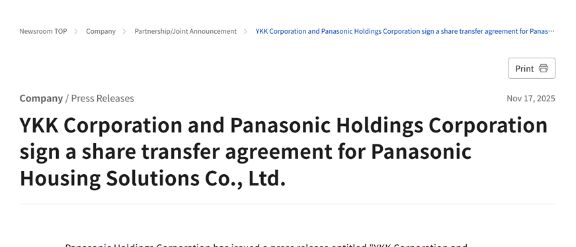 近日,松下控股宣布將旗下建材子公司PanasonicHousingSolutions(簡稱“PHS”)80%股權出售給日本建材巨頭YKK集團,這一交易預計2026年3月底完成,2026年4月起PHS將以新體制運作。