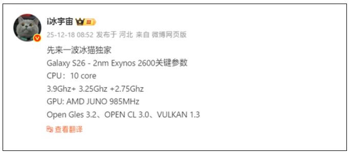 三星Exynos2600的機型依然定檔在明年1月份上市,由GalaxyS26系列首發(fā)搭載,這是行業(yè)首款2nm芯片,采用三星2nmGAA工藝制造。據(jù)博主“i冰宇宙”最新消息,Exynos2600確認采用10核心CPU方案,包括1個9GHz超大核、3個25GHz大核以及6個75GHz核心。