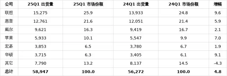 市場調(diào)查機(jī)構(gòu)Gartner昨日(4月14日)發(fā)布博文,報告稱2025年第1季度全球PC出貨量達(dá)5900萬臺,同比增長4.8%。