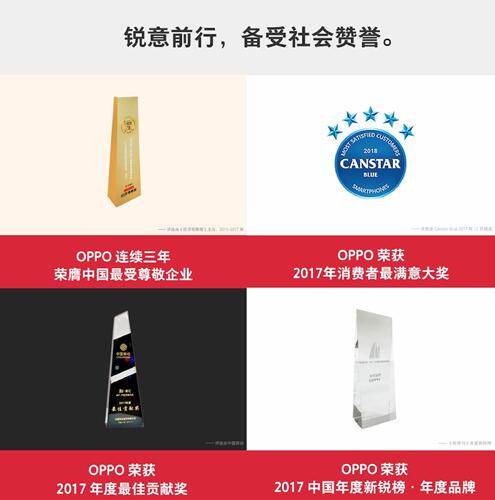 而OPPO的堅持也得到回報,在國內市場,OPPO連續三年被評選為“最受尊敬企業”,成為唯一一家獲此殊榮的手機品牌;在國際市場,澳洲權威評比機構Canstar Blue也將Most satisfied customers smartphones 2018(消費者最滿意大獎)頒發給OPPO。