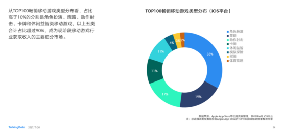 不過,我們仍然要看到的是,在TOP100的暢銷游戲中,角色扮演類產品仍舊占據了33%的份額,也就是說,MMORPG產品仍舊是當下中國游戲玩家所十分需要的一個品類,大量的重度核心玩家,仍然堅守在這個領域之中,等待更好的新產品出現。