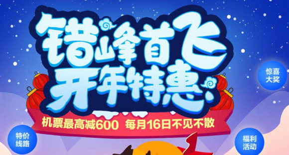除此之外,用戶在途牛機票頻道進入“錯峰首飛 開年特惠”專題,還可參與“飛”人大轉盤抽獎,有機會獲得小米隨身WIFI、飛機模型、旅行手帳等禮品。二月初,途牛還將上線“新春大促”活動,給用戶帶來最新優惠票價,以及更多立減、滿減優惠活動。