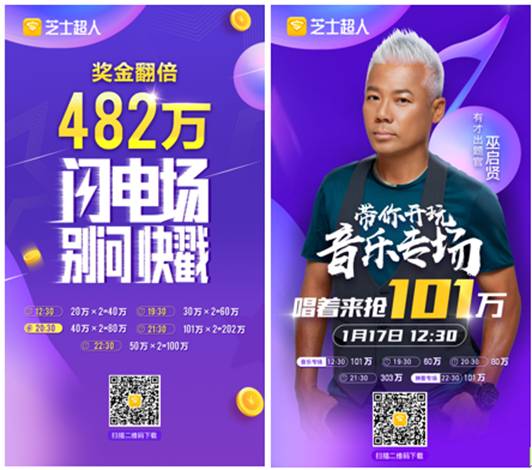 巨額的獎(jiǎng)金誘惑,無(wú)任何參與門(mén)檻,邀請(qǐng)好友獲得復(fù)活卡的社交裂變,讓在線(xiàn)答題平臺(tái)快速實(shí)現(xiàn)了拉新、促活。雖然每場(chǎng)答題都要投入不小的獎(jiǎng)金成本,但是換來(lái)百萬(wàn)流量也是相當(dāng)劃算。有數(shù)據(jù)反饋,目前在線(xiàn)答題人數(shù)超過(guò)100萬(wàn)人次已經(jīng)非常常見(jiàn),1月16日晚《芝士超人》在線(xiàn)答題人數(shù)超過(guò)300萬(wàn),1月17日中午《芝士超人》巫啟賢“音樂(lè)專(zhuān)場(chǎng)”破400萬(wàn),創(chuàng)新高。