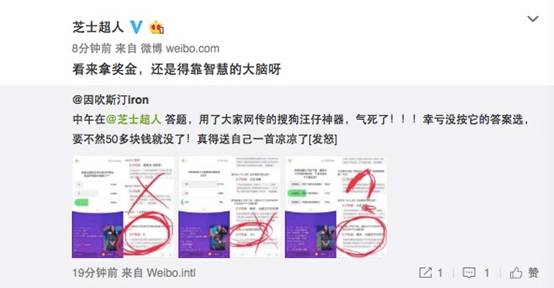 對(duì)此,有名“90后”網(wǎng)友發(fā)表微博表示被“答題神器”坑死,而身邊的“90后”朋友也同樣遭遇這種情況,表示要在“90后專(zhuān)場(chǎng)”靠實(shí)力贏得現(xiàn)金。