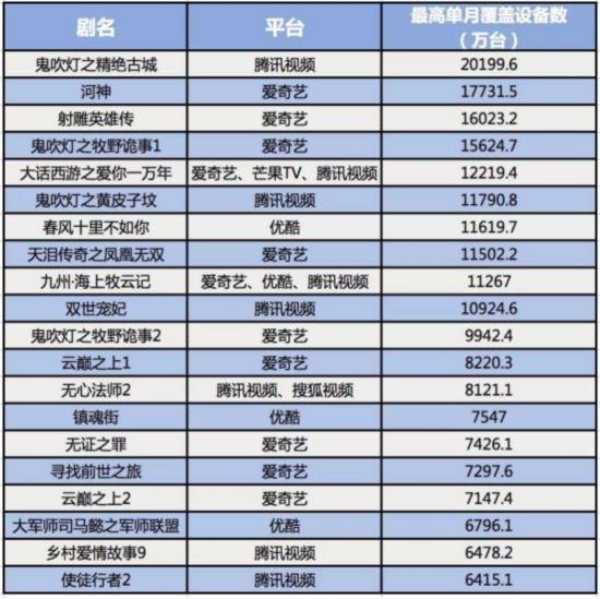 從網(wǎng)絡(luò)自制劇的20部中可以看到,愛奇藝占據(jù)11部,騰訊視頻8部,優(yōu)酷5部,搜狐視頻1部。愛奇藝高居榜首,這說明由其制播的自制劇在全品類內(nèi)容的對標中,在瓜分用戶剩余時間的勢能上,均在全網(wǎng)處于遙遙領(lǐng)先的地位。大投入、網(wǎng)臺聯(lián)播成為網(wǎng)絡(luò)原創(chuàng)視聽節(jié)目發(fā)展的新常態(tài)。