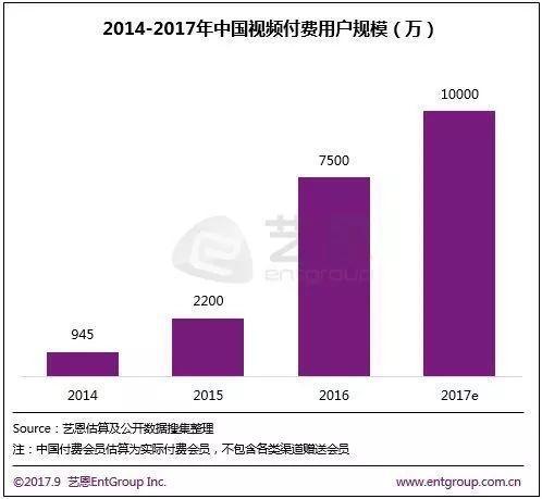 就付費用戶數(shù)量來看,華策影視研究院披露的數(shù)據(jù)顯示,2017年視頻網(wǎng)站付費市場規(guī)模推算已有200億,付費劇數(shù)達到121部,相比去年翻了一倍,預估這一規(guī)模將在未來兩年內(nèi)有望突破500億,這意味著付費收入將完全比肩廣告收入。