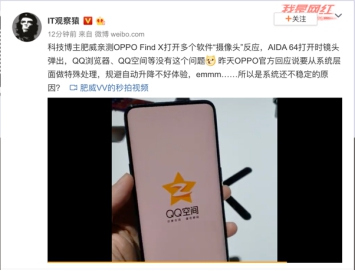 數(shù)碼博主肥威錄制的體驗(yàn)視頻顯示,打開AIDA 64時(shí),滑軌自動(dòng)升起后又降下了,而QQ瀏覽器、QQ空間等APP則無“異常”。