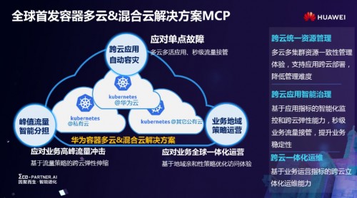 本次大會上,現場演示了全球首個容器多云&混合云解決方案,提供跨云平臺(不同公有云之間或公有云到私有云)的Kubernetes集群和云原生應用統一監控、部署、運維的能力,以及業務流量的跨云統一治理、地域親和,幫助企業用戶客戶輕松應對業務流量高峰的沖擊、云單點宕機故障以及業務全球一體化運營區域化接入的訴求。