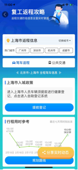 當下復工復產正有序推進,為方便用戶安全順利返程、滿足復工季的日常生活需求,百度地圖又推出“復工返程攻略”、“復工地圖”等功能。對于前者而言,無論用戶駕車返程還是乘坐公共交通工具,都可以通過攻略獲取前往目的地路上的擁堵、路程耗時、入境登記、沿途城市疫情等信息,以便及時調整行程計劃。而對于后者,百度地圖及時更新了超市、商場、餐飲等與日常生活密切相關場所的營業狀態、最新營業時間,在地圖中為用戶清晰展示出來,以免外出時跑空。