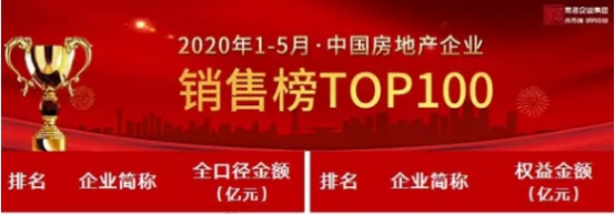 克而瑞《2020年1-5月中國房地產企業銷售TOP100排行榜》