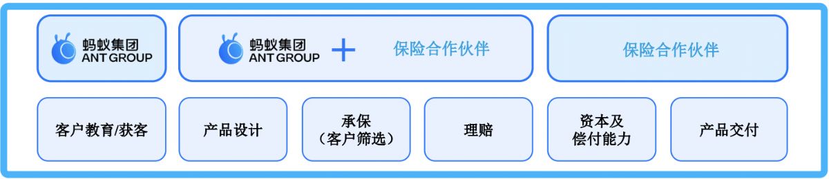 區別于傳統保險公司先自主設計產品再銷售的路徑,螞蟻的保險業務是先發現用戶需求,再與保險公司合作設計產品,并提供在線平臺對外發售,同時提供數據與技術的支持。
