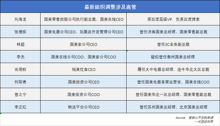 9月,引入“新血液”向海龍的國美宣布了一輪大規模人事調動,在任命向海龍為國美在線CEO的同時,還任命張德炬為國美電器公司CEO,林超為國美家公司CEO,李杰為國美在線公司COO兼任國美家公司COO……