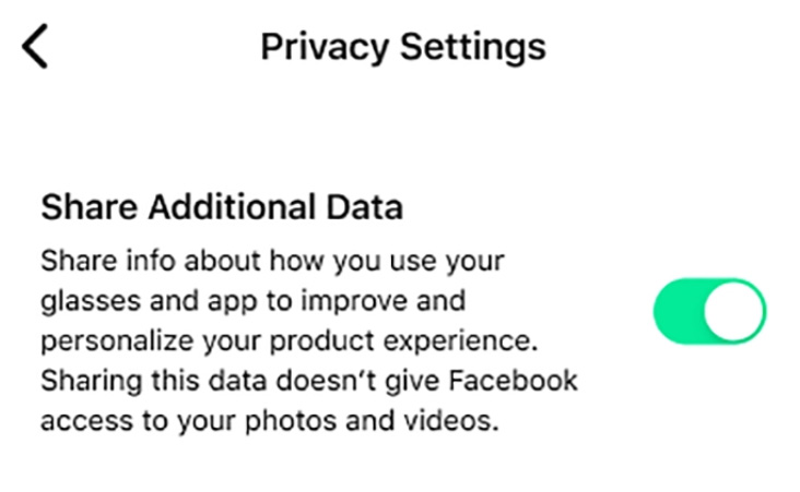 默認(rèn)情況下,Ray Ban Stories智能眼鏡會收集使眼鏡正常工作所需的數(shù)據(jù),如電池電量不足時提醒你的電池狀態(tài)、登錄Facebook時驗證是否電子郵件地址和密碼,以及你的WiFi連接等等。你可以選擇與Facebook分享其他數(shù)據(jù),包括你拍攝的圖像數(shù)量或你拍攝視頻的時間,從而幫助團(tuán)隊優(yōu)化產(chǎn)品。