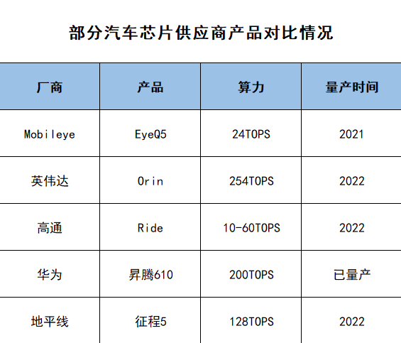 此外,Mobileye在芯片算力上,如果放在行業中橫向比較的話,同樣不占優勢。