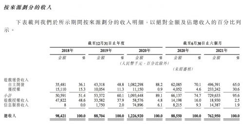 青瓷游戲的營收主要來自游戲運(yùn)營收入(自研、第三方授權(quán))、游戲授權(quán)收入、信息服務(wù)收入三塊。其中,游戲運(yùn)營收入是大頭,占總營收的比重的逐年攀升,2021年上半年已經(jīng)升至95.6%。