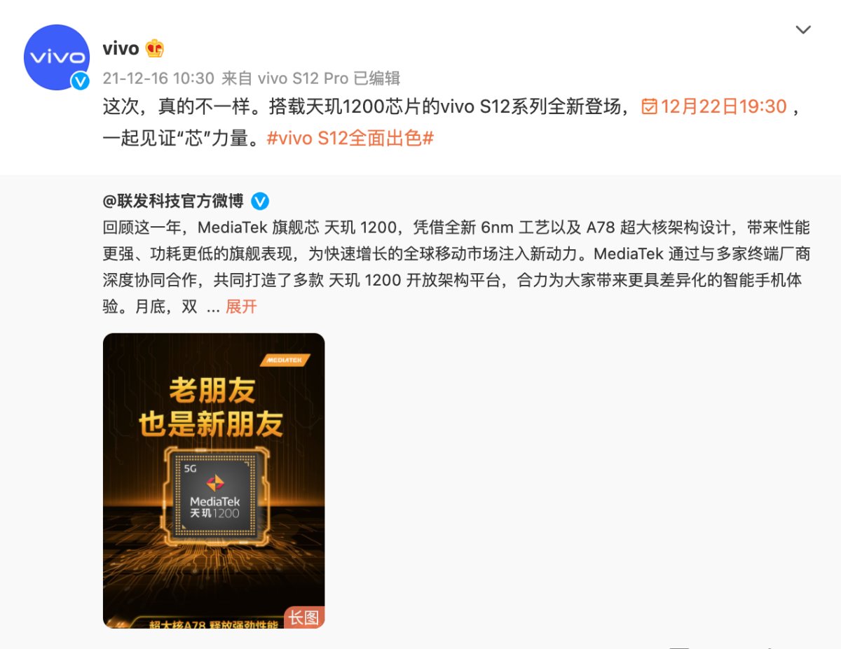 先鋒影像旗艦vivo S12系列將于12月22日正式發(fā)布。它究竟還會(huì)給我們帶來(lái)哪些驚喜,歡迎持續(xù)關(guān)注。