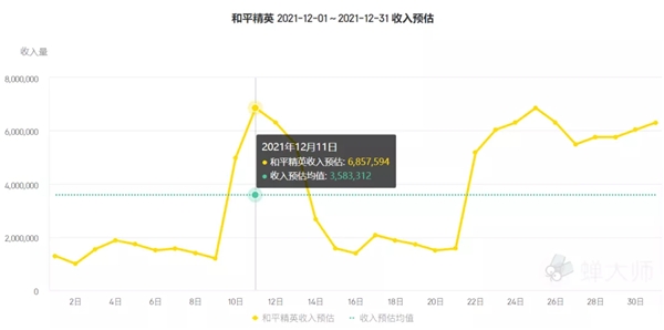 在收入維度,12月的游戲榜單發(fā)生了“驚人”的變化。根據(jù)蟬大師數(shù)據(jù)顯示,幾乎霸榜2021全年的《王者榮耀》被擠下了收入榜第一的寶座。