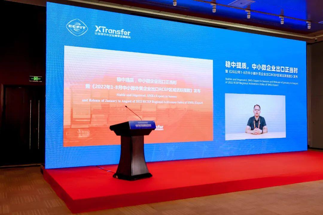 XTransfer創始人兼CEO鄧國標以線上視頻的形式發布《2022年1-8月中小微外貿企業出口RCEP區域活躍指數》,他表示,RCEP生效半年多來,從年初的10國“建群”到目前的13國“攜手”,RCEP成員國“朋友圈”不斷擴大,不僅為廣大進出口企業和消費者帶來了實實在在的紅利,也幫助區域各國提升綜合貿易競爭力、加強合作共贏。