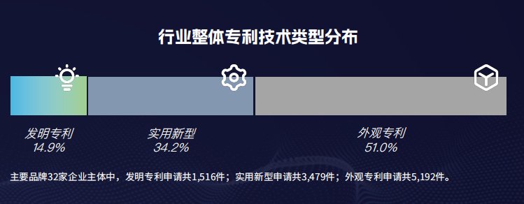 行業多數品牌的外觀專利占比較大,這部分基于外形的改進,在消費者較為看重的產品外形、結構等方面,有較為持續、高頻的外觀更新迭代。