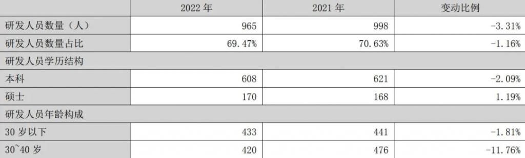 AI 能力的強弱與研發(fā)投入息息相關(guān),而研發(fā)投入恰恰是巨人網(wǎng)絡(luò)的短板:2017 年的研發(fā)費用為 6.288 億,到了 2022 年為 6.426 億,幾乎毫無增長;2017 年的研發(fā)人員尚有 1661 人,到了 2022 年為 965 人,縮水幅度為 41.90%。