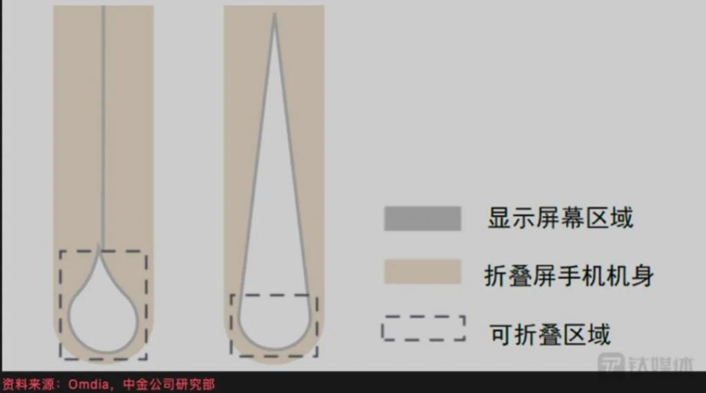 隨著供應鏈能力地提升,可以看到,基于增強折疊屏幕強度和耐用性的要求,蓋板、鉸鏈已經有了更優的解決方案。比如京東方研發的水滴形態技術,減緩了折疊區的彎折半徑,可實現超 20 萬次折疊。由于水滴形的設計,使得水滴上端的亮片屏幕自然靠攏,也給整機的厚度控制帶來了巨大的便利,節約整機空間的同時也為電池容量提供了保障。