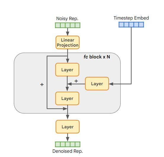 為此,RCG提出了表示擴散模型RDM。它使用全連接網絡作為主干,包含數個殘差塊。每個塊里面包括激活函數、線性層等。