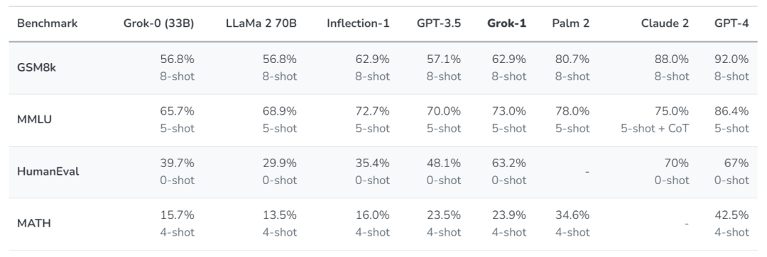 下面這個(gè)表格展示了 Grok-1 的更多信息(來自 2023 年 11 月的博客,部分信息可能存在更新):