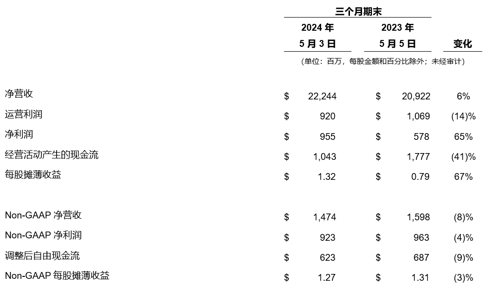 主要指標(biāo)方面,該集團報告期內(nèi)凈利潤 9.55 億美元(當(dāng)前約 69.33 億元人民幣),同比增長 65%。運營利潤為 9.2 億美元(當(dāng)前約 66.79 億元人民幣),non-GAAP 運營利潤為 15 億美元(當(dāng)前約 108.9 億元人民幣)。運營現(xiàn)金流為 10 億美元(當(dāng)前約 72.6 億元人民幣)。每股攤薄收益為 1.32 美元(當(dāng)前約 9.5832 元人民幣),同比增長 67%。