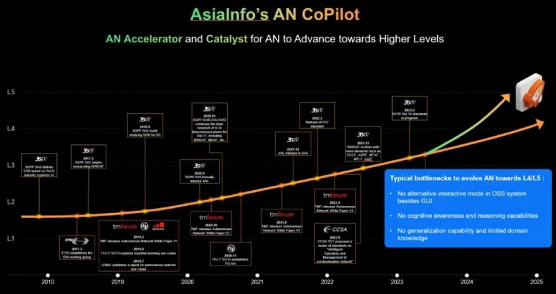 歐陽曄博士表示,隨著人工智能與通信人工智能技術的發展,大模型技術在自智網絡領域應用日益廣泛。亞信科技自智網絡副駕作為自智網絡向高階演進的加速器與催化劑,通過知識問答、智能分析、智能決策、意圖閉環4類增強能力構建專屬模型與認知增強服務。亞信科技基于該產品打造自智網絡副駕工具集,助力全球通信運營商自智網絡加速向L4演進。同時自主智能Autonomous Agent、具身智能Embodied AI 等新一代智能體技術將在L4、L5階段嘗試應用。