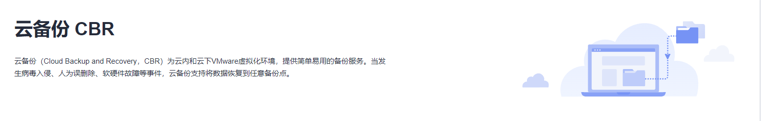 CRB是一款云備份服務,可以為云內的云服務器、云硬盤、SFS Turbo、云上及本地文件目錄,以及VMware虛擬化環境,提供簡單易用的備份服務,針對病毒入侵、人為誤刪除、軟硬件故障等場景,可將數據恢復到任意備份點: