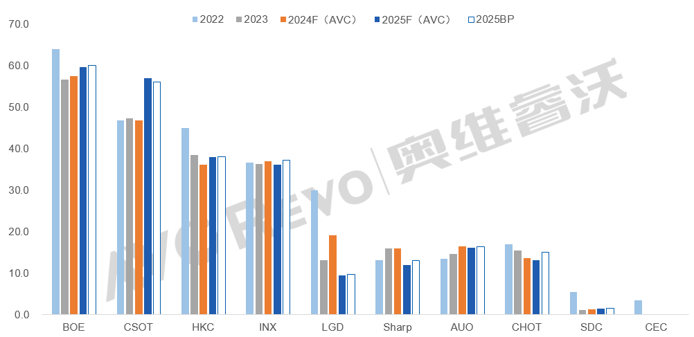 近日,據行業機構奧維睿沃(AVC Revo)預測分析表示,CSOT(華星光電)明年(2025年)全球TV面板出貨計劃56M,其中收購的LGD廣州工廠出貨計劃6M左右。